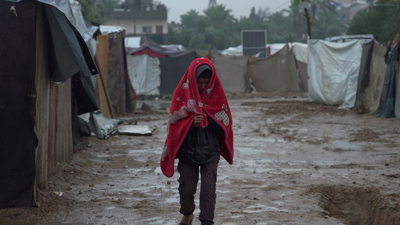 When the rain started, families in Gaza hoped it would pass quickly. But within hours, water was pouring into the tented camps where thousands of displaced people are trying to survive winter with almost nothing. One mother described waking to the sound of water hitting the floor beneath her children. “The ground turned to mud. Their blankets were soaked. I had nothing dry to give them.”